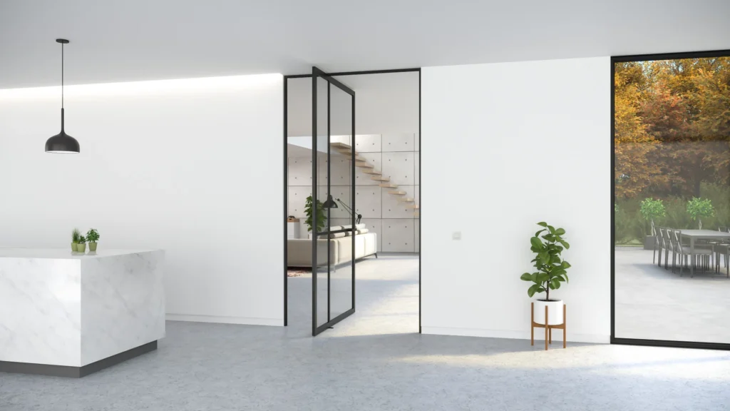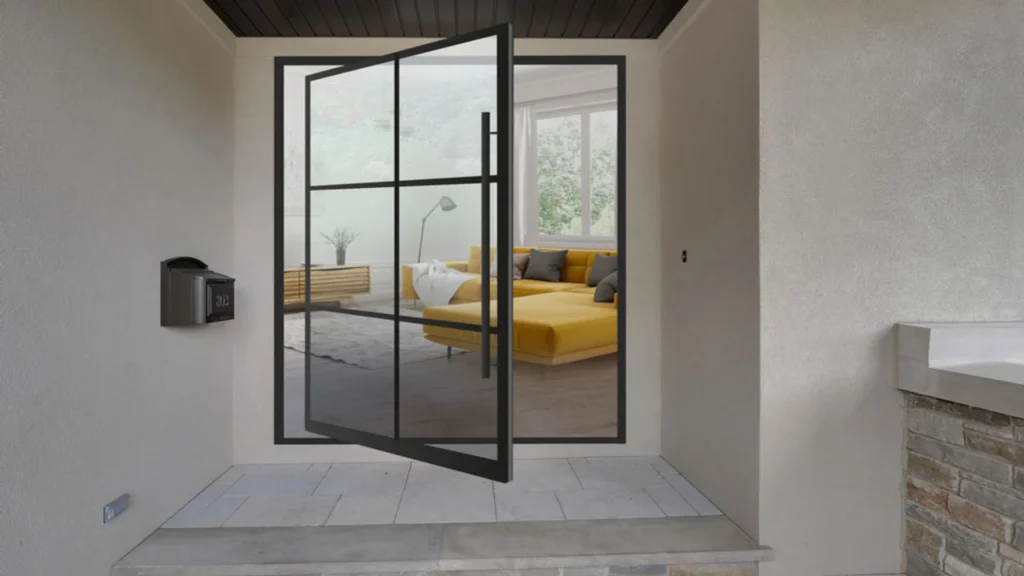 این مکانیزم خاص، به درب پیوت ظاهری بسیار مینیمال، شیک و بدون قاب میبخشد. چون لولاها پنهان هستند و درب به نظر میرسد که آزادانه در فضا شناور است. به دلیل نحوه توزیع وزن، دربهای پیوت میتوانند در ابعاد بسیار بزرگ، عریض و سنگین ساخته شوند که این ویژگی آنها را به گزینهای ایدهآل برای ورودیهای بزرگ و لوکس تبدیل میکند. این دربها نه تنها به عنوان یک ورودی، بلکه به عنوان یک عنصر معماری مدرن و چشمنواز در نمای ساختمان به کار میروند.