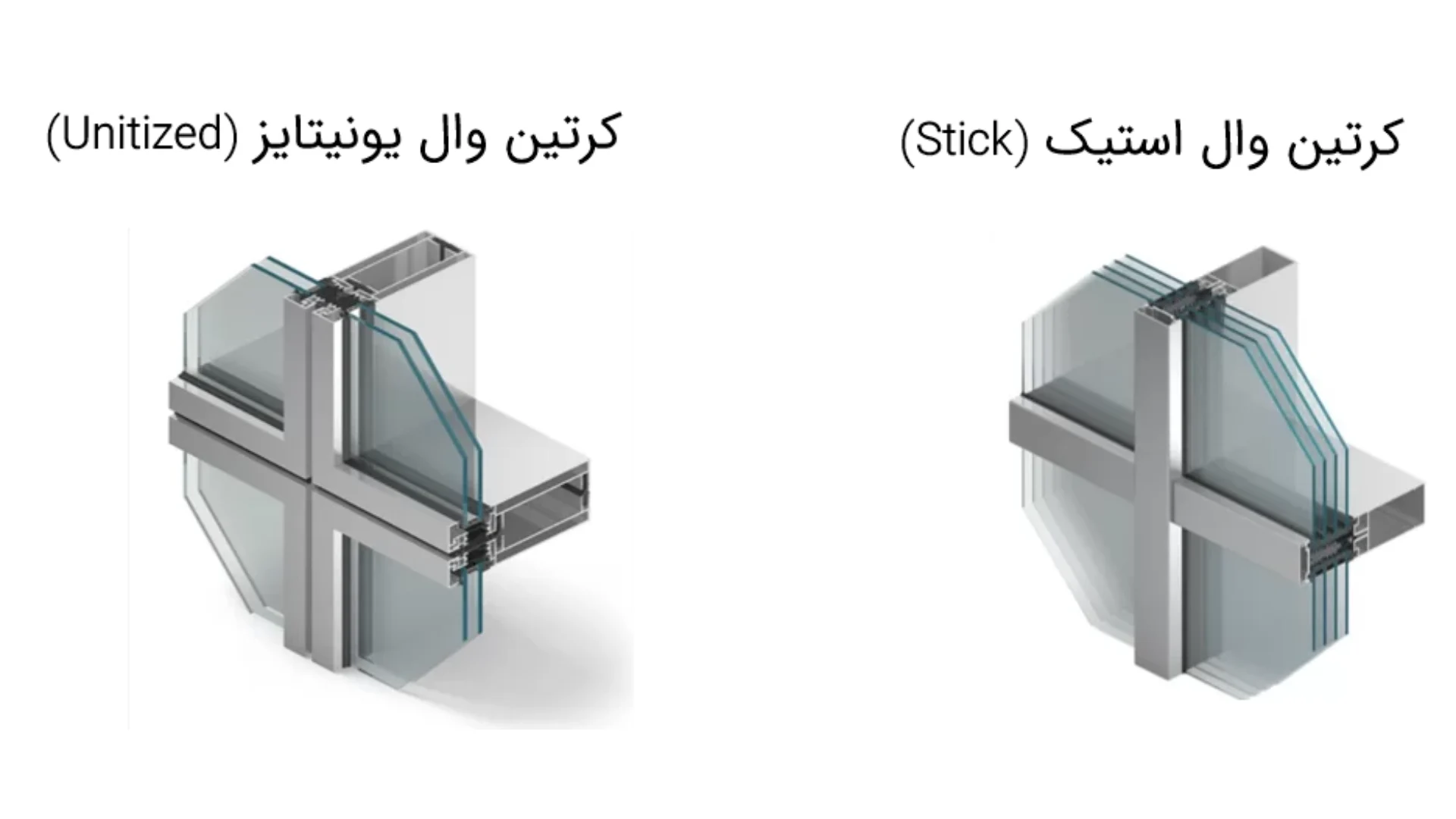 انتخاب نوع سیستم کرتینوال اهمیت زیادی دارد؛ زیرا هر پروژه از نظر ارتفاع، شرایط آبوهوایی، سرعت اجرا و بودجه، نیازهای متفاوتی دارد. دو نوع اصلی کرتینوال در صنعت ساختوساز مدرن وجود دارد: سیستم استیک (Stick System) و سیستم یونیتایز (Unitized System) که در ادامه بهصورت کامل بررسی و مقایسه میشوند.
