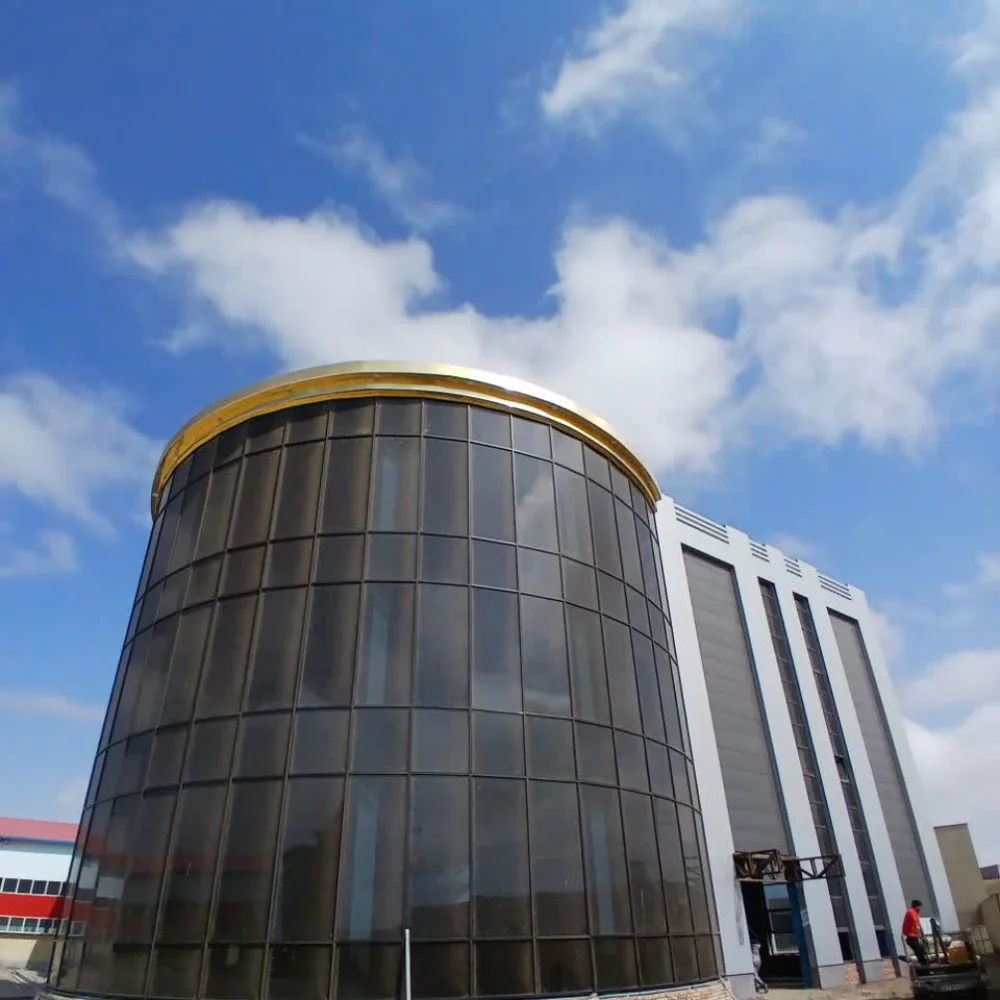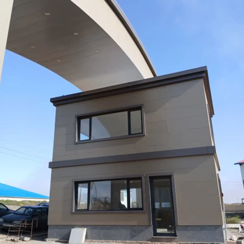 در ترکیب با این ساختار مقاوم، از شیشههای دوجداره سکوریت با ضخامت ۶ میلیمتر و رنگ دودی استفاده شده است. این شیشهها، علاوه بر ایمنی بالا بهدلیل فرآیند سکوریت شدن، نقش مؤثری در عایقسازی صوتی و حرارتی دارند. رنگ دودی شیشه، با کاهش شدت نور و تابش مستقیم آفتاب، موجب تعدیل دمای داخلی و افزایش آسایش کاربران میشود. همچنین با ایجاد سطحی نیمهشفاف، به حفظ حریم خصوصی در طول روز کمک میکند و ظاهر نمای ساختمان را بهطور چشمگیری مدرنتر و حرفهایتر جلوه میدهد.