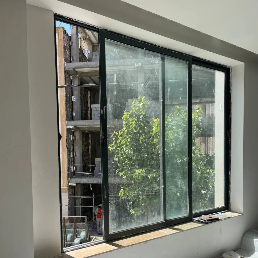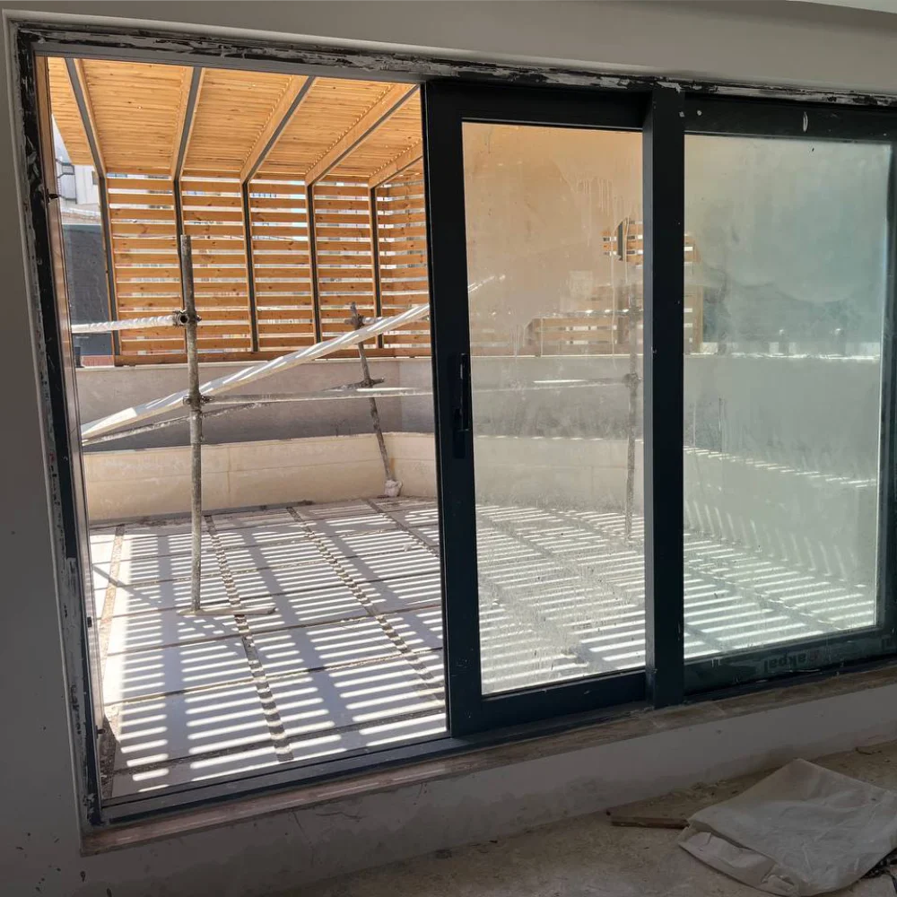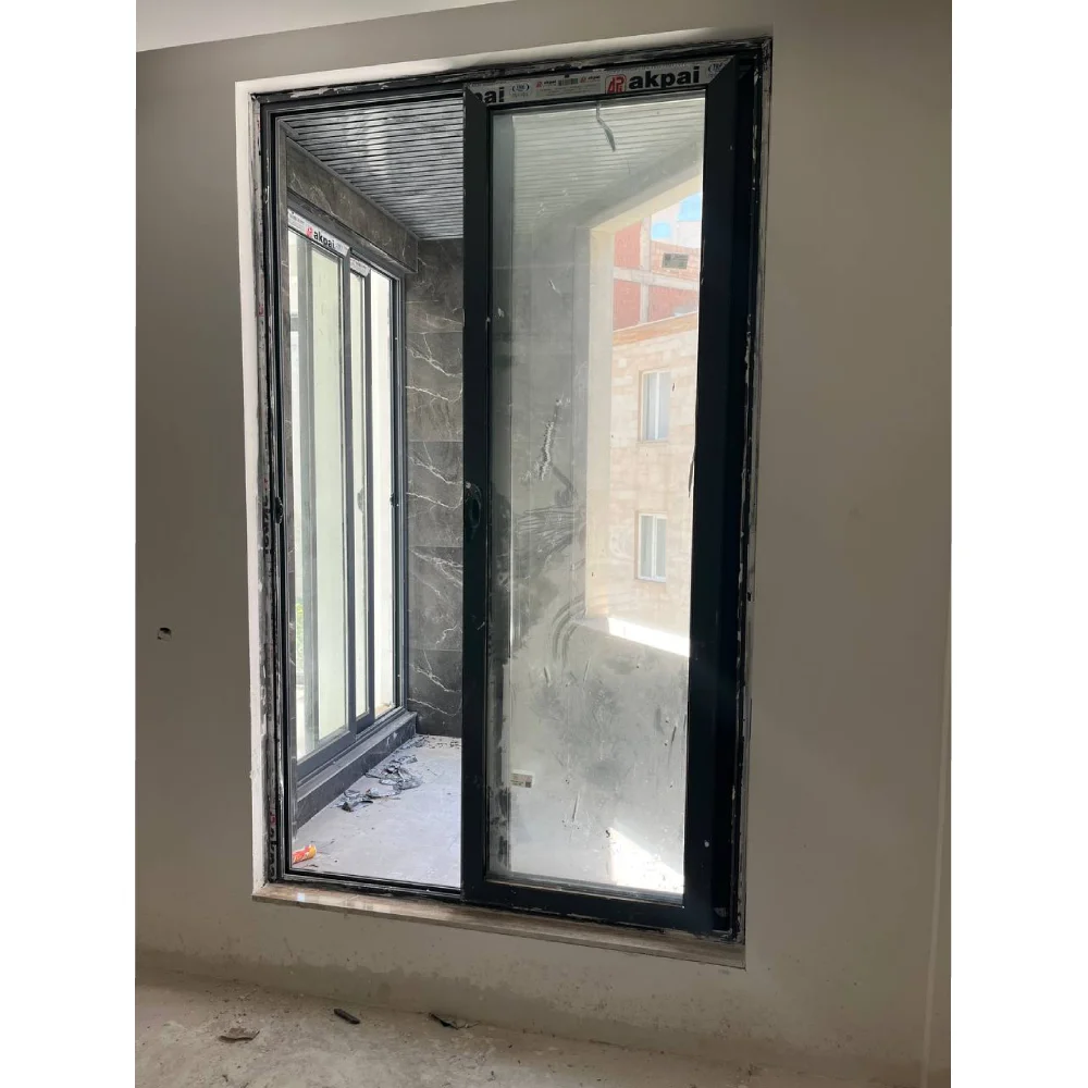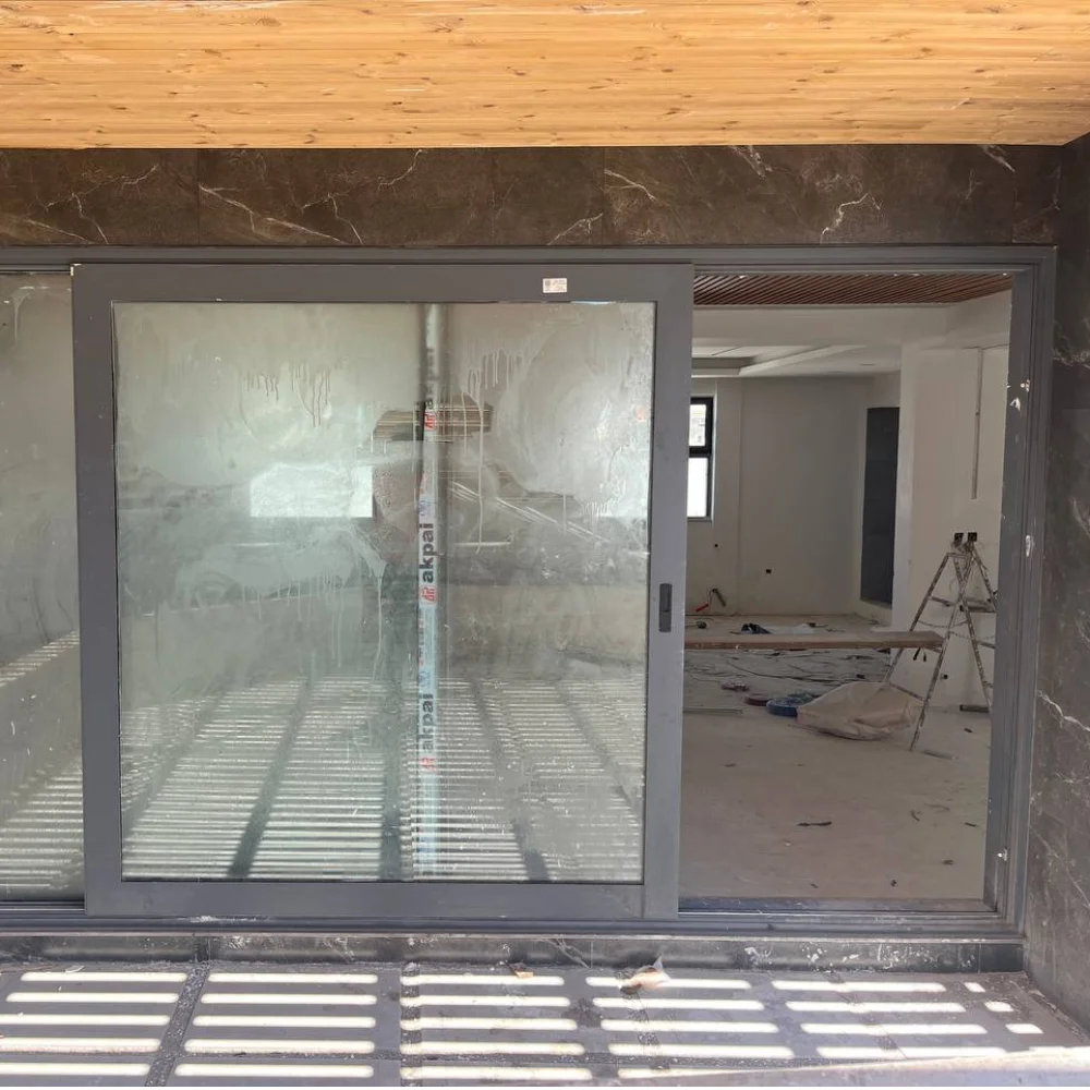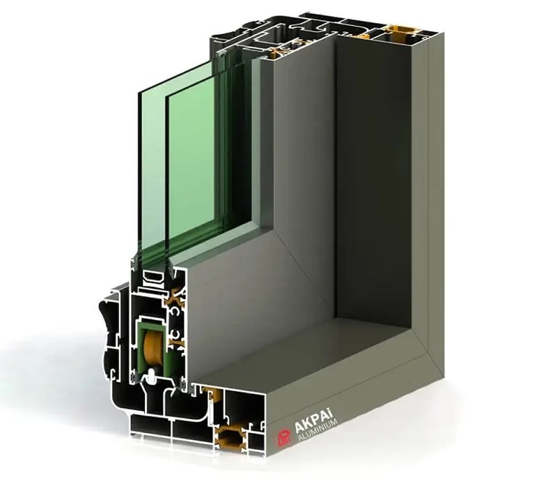 سیستم درب و پنجره آلومینیومی ترمال بریک آکپا – رنگ نوک مدادی، بازشو کشویی و لولایی با شیشه رفلکس سیلور
