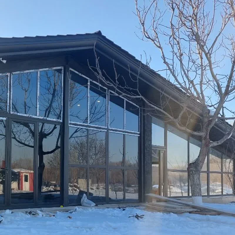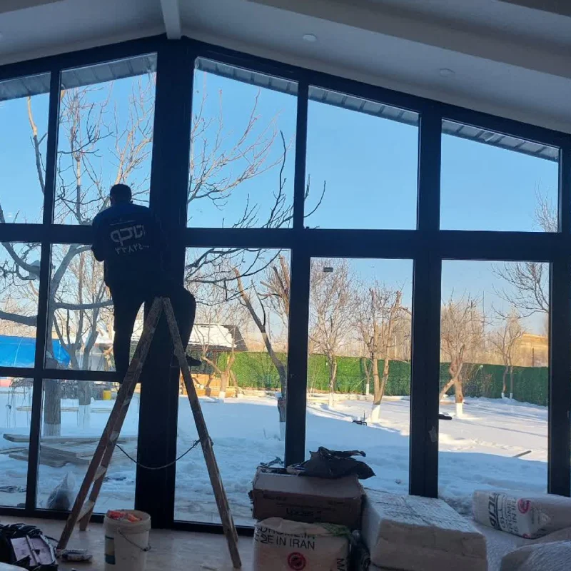 اجرای پنجرههای آلومینیومی ترمال بریک مشکی با شیشه دوجداره رفلکس نقرهای
