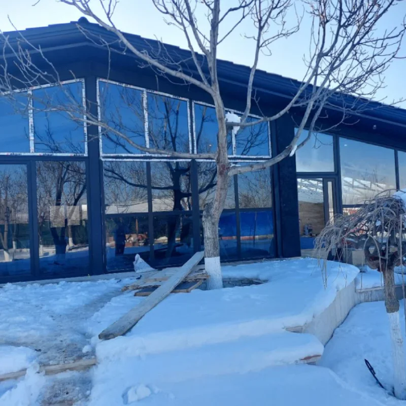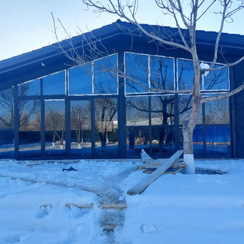 برای افزایش کارایی و زیبایی بیشتر، در این پروژه از شیشههای دوجداره رفلکس با رنگ نقرهای (Silver Reflective Glass) بهره گرفته شده است. این نوع شیشهها با خاصیت بازتابش نور و گرمای خورشید، مانع از ورود اشعههای مضر UV و حرارت اضافی به فضای داخلی میشوند. همچنین، خاصیت رفلکتیو (آینهای) شیشه در طول روز موجب حفظ حریم خصوصی میگردد، بدون آنکه از میزان نور طبیعی کاسته شود. رنگ نقرهای نیز با درخشش خنثی و جذاب خود، هماهنگی کاملی با رنگ مشکی پروفیلها ایجاد کرده و در نهایت، ترکیبی مدرن، لوکس و کاملاً هماهنگ را به نمایش گذاشته است.